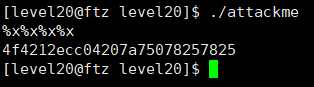 - %c라는 서식문자가 포함되어 있기 때문에, stack의 4byte를 출력하게 된다.