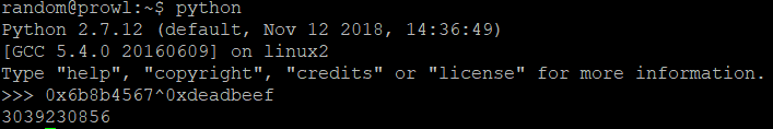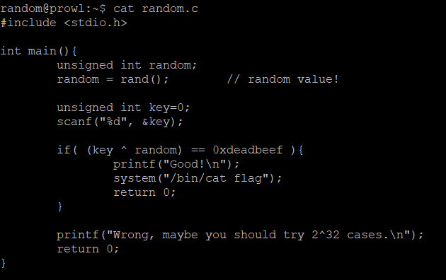 random ^ 0xdeadbeef하면 key가 나올 것이다.