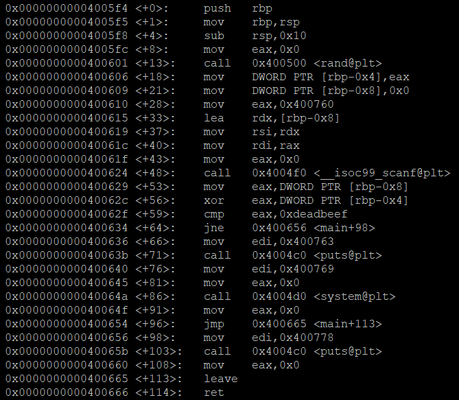 rand() 함수 결과값이 eax에 들어갔으므로, info register로 확인한다.