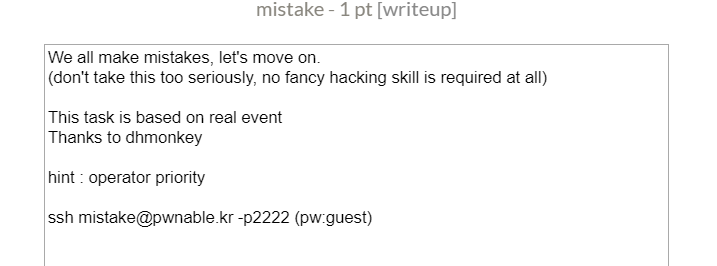 [pwnable.kr] mistake