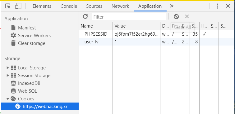 $_COOKIE['user_lv'] 값이 5 초과일 때 문제가 풀리는 것 같다.